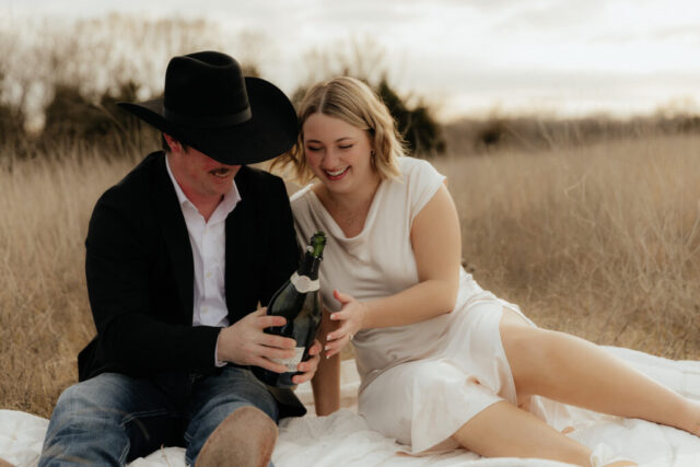 It’s a classic simple style to have an Open Field Dallas Engagement Session as the location for your wedding engagement session. Because of the simplicity, there’s many easy ways to add personality and romance to it. This couple chose to do a little picnic with drinks and reading a book.